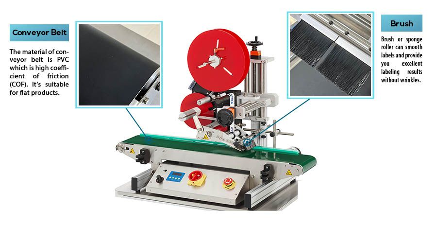 The machine can smooth stickers by the brushes or a sponge roller to make labeling results more refined. - LT1100 desktop label applicator can combine with our other machines to build an automatic production line.